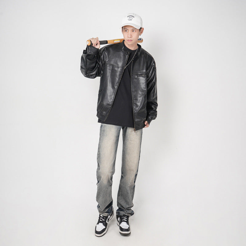 Men’s Washed Yellow Loose Straight Jeans – Casual Streetwear